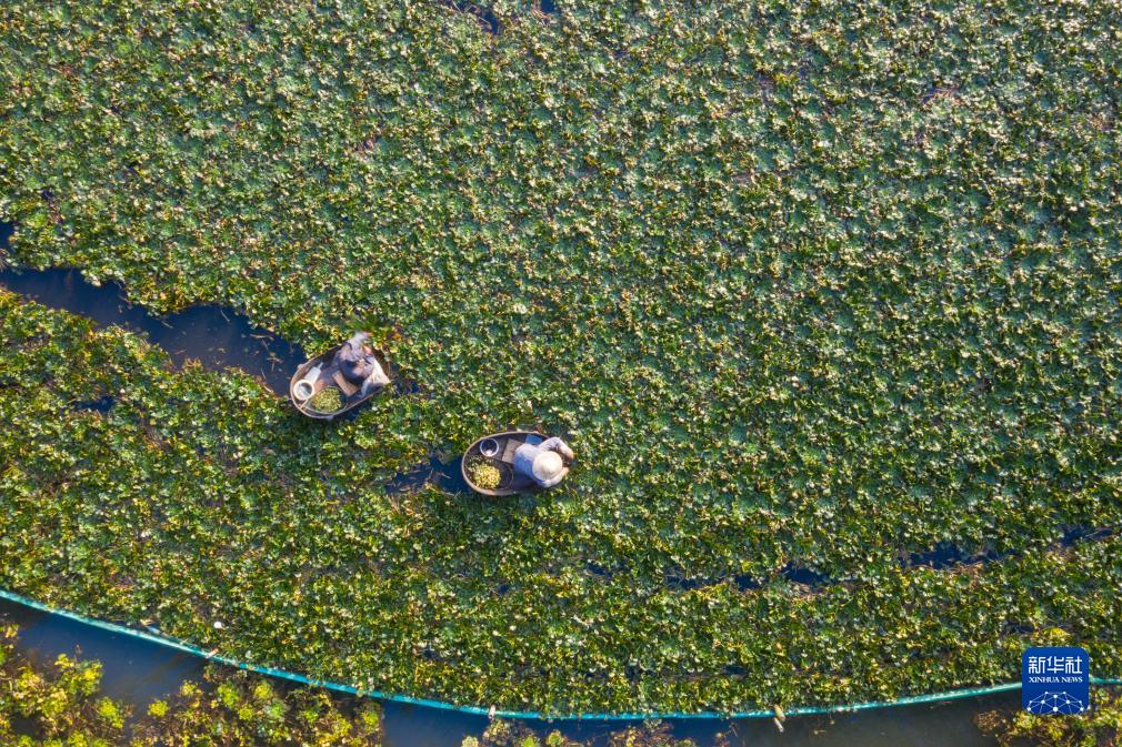 金秋時節,浙江嘉興南湖的特產——南湖菱開始批量上市。在嘉興市南湖景區的南湖菱種植區內,菱農每天清晨劃著菱桶采摘成熟的南湖菱。南湖菱種植歷史已有千年,憑著圓潤無角的獨特外形和皮薄、汁多、甜脆、清香的口感,備受食客青睞。近年來,嘉興市南湖區深挖南湖菱文化和經濟價值,修建南湖菱文化園、舉辦南湖菱文化節等,推進主題文化研學、文創產品研發、特色餐飲、休閑旅游等項目,在促進特色農業發展和農民持續增收的同時,也讓更多人了解嘉興的人文歷史。