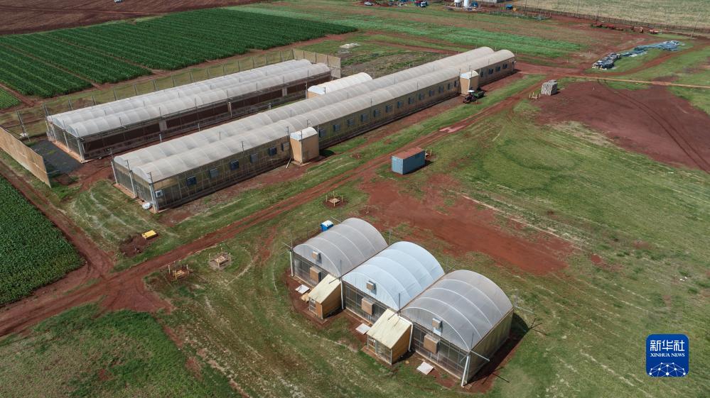 這是10月11日在位于巴西圣保羅州克拉維紐斯拍攝的隆平巴西育種溫室大棚(無人機照片)。