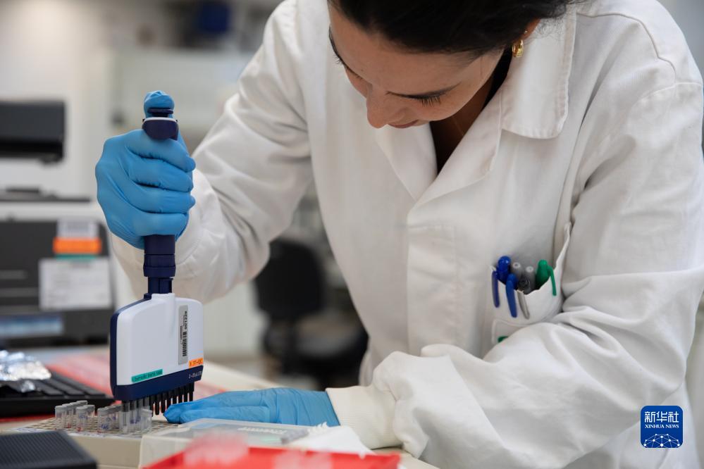 10月11日,一名科研人員在位于巴西圣保羅州克拉維紐斯的隆平巴西分子生物實驗室內工作。