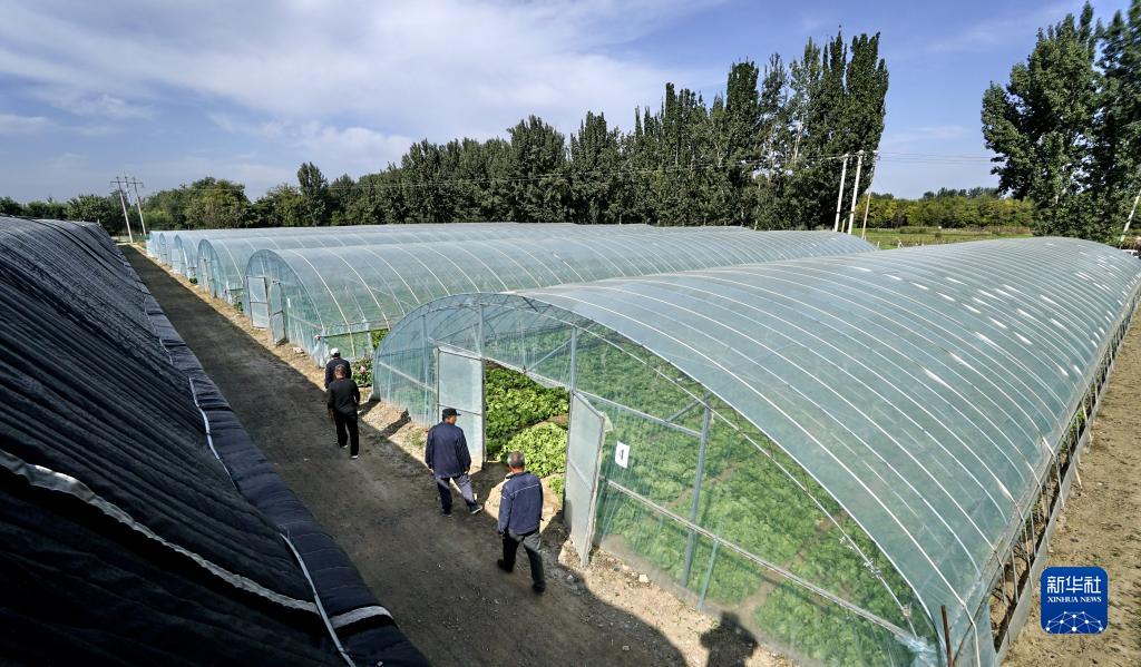 10月10日,農(nóng)民在巡視“五村聯(lián)營”村共同出資在潞城營一村建設(shè)的訂單蔬菜大棚。