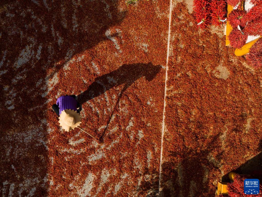 金秋時節,青海省海東市循化撒拉族自治縣在黃河兩岸種植的萬畝線辣椒迎來豐收,進入晾曬季。近年來,循化撒拉族自治縣依托高原地區冷涼氣候和黃河谷地優越的地理條件,大力發展線辣椒特色產業,促進農民增收,助力鄉村振興。