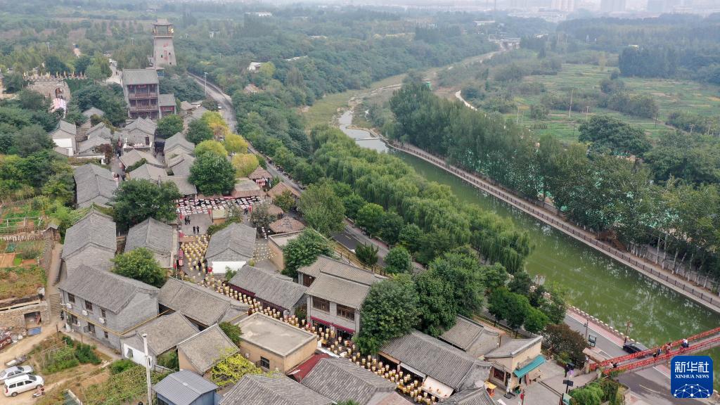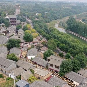 這是10月12日拍攝的石家莊市鹿泉區(qū)土門(mén)關(guān)驛道小鎮(zhèn)景色(無(wú)人機(jī)照片)。