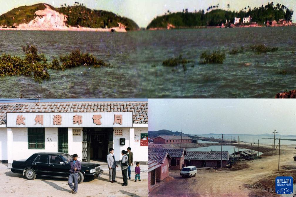 這是90年代欽州港舊址的拼版照片,當(dāng)時為一個小漁村(資料照片)。