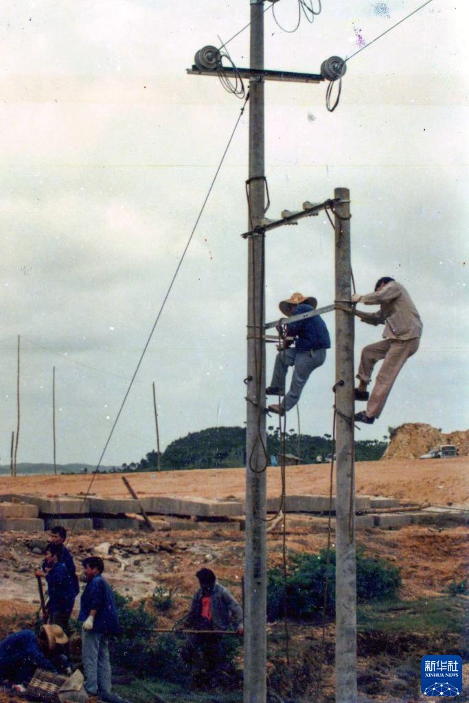 這是在欽州港立起來的第一根電線桿(1992年5月18日攝)。