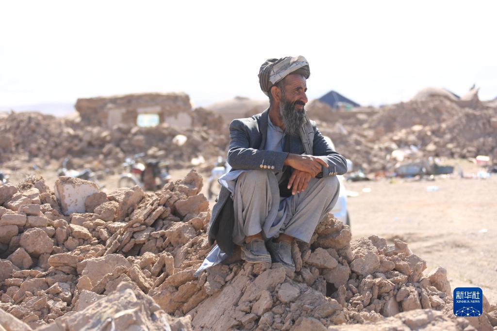 10月11日,在阿富汗西部赫拉特省津達詹區(qū)奈卜拉菲村,一名老人坐在震后廢墟上。