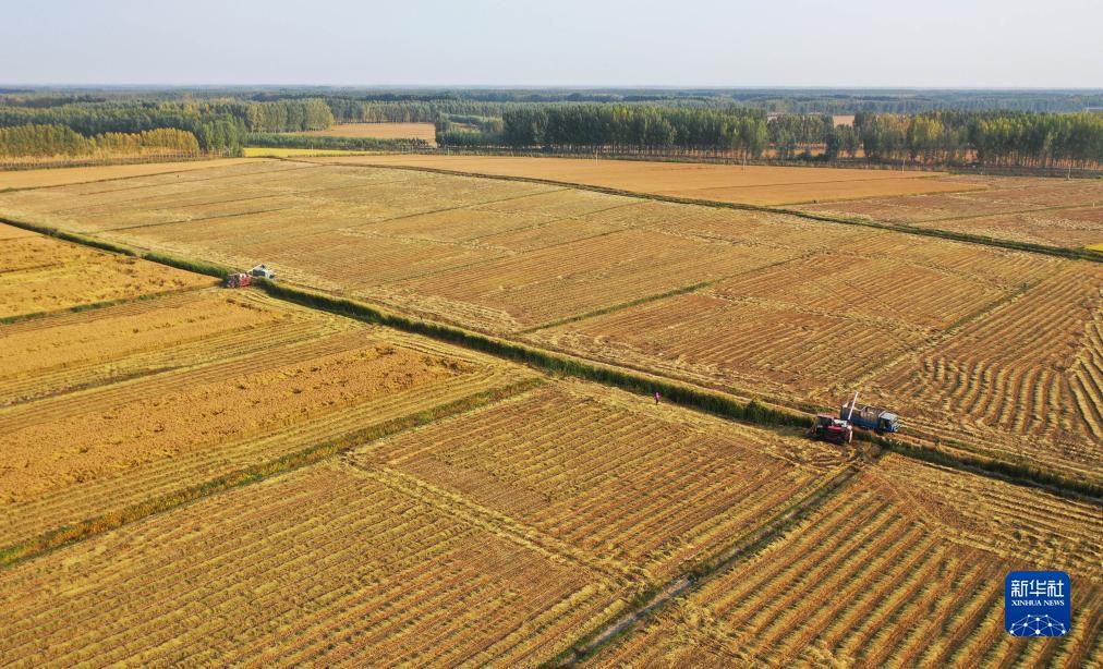 金秋時節,河北省唐山市的水稻迎來收獲季節,農民開始搶抓農時適時收獲,確保顆粒歸倉。