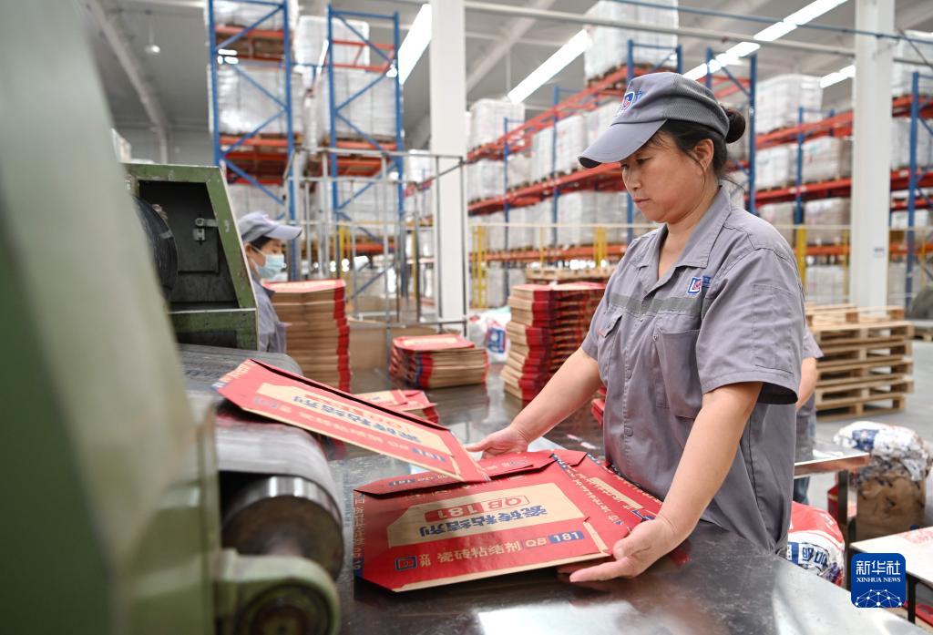 10月12日,河北元氏縣一家新材料生產(chǎn)企業(yè)工人在車間生產(chǎn)線上工作。