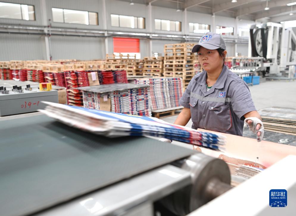 10月12日,河北元氏縣一家新材料生產企業工人在車間生產線上工作。