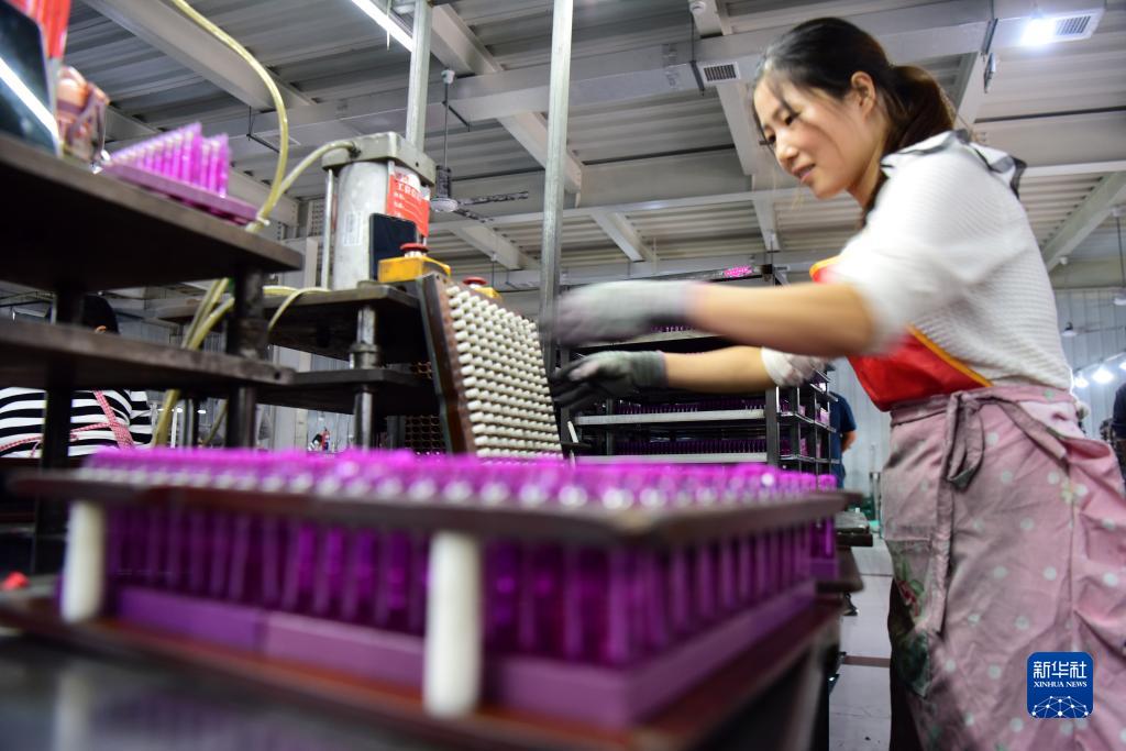 10月12日,工人在河南省夏邑縣會亭鎮一家打火機企業的生產車間工作。