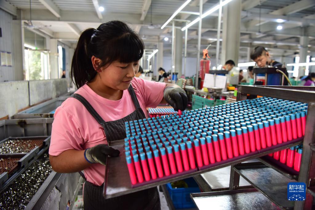 10月12日,工人在河南省夏邑縣會亭鎮一家打火機企業的生產車間工作。