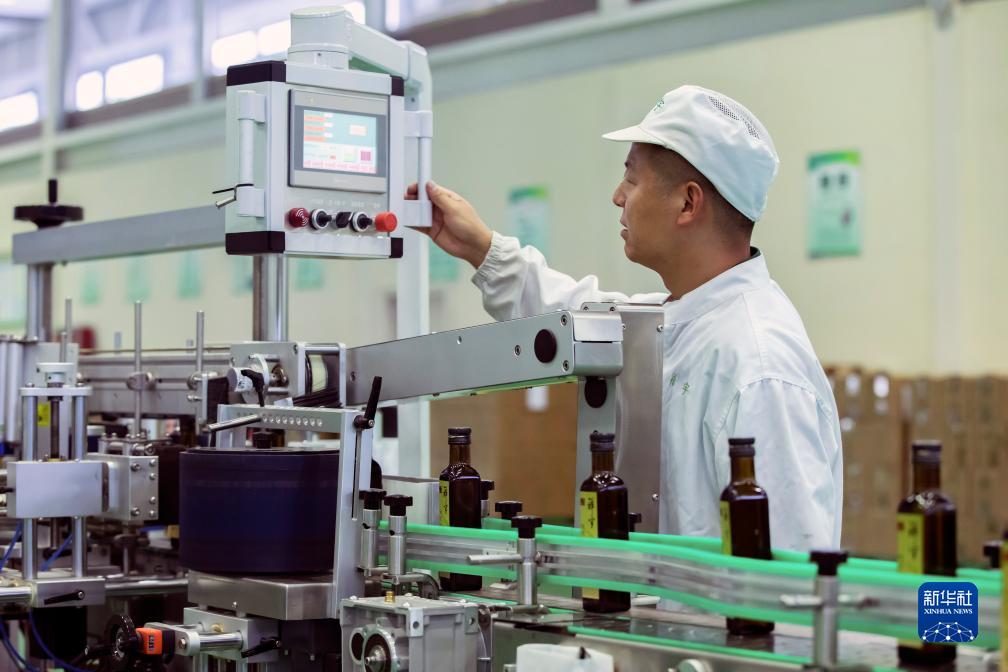 10月11日,工作人員在隴南市武都區(qū)一家油橄欖加工企業(yè)生產線上作業(yè)。