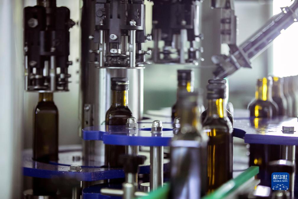 這是10月11日在隴南市武都區一家油橄欖加工企業拍攝的橄欖油灌裝生產線。
