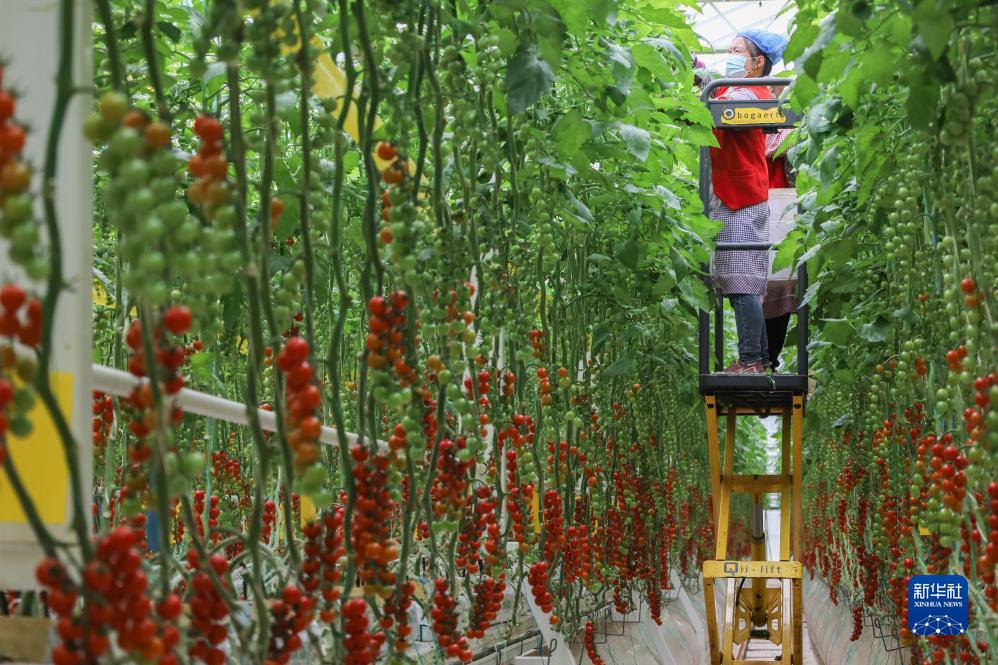 近日,在甘肅省平?jīng)鍪嗅轻紖^(qū)四十里鋪鎮(zhèn)的智能玻璃溫室里,采用基質吊架立體栽培系統(tǒng)等技術培育的串收番茄陸續(xù)成熟,務工人員忙著收獲、打包,準備進行銷售。近年來,平?jīng)鍪兄Πl(fā)展設施蔬菜產業(yè)鏈,不僅為市場提供了高品質產品,還幫助群眾實現(xiàn)就近就業(yè)。
