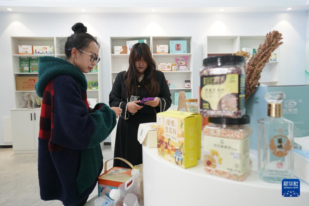10月12日,在河北省沽源縣一家藜麥加工企業(yè)展廳,工作人員在向客商推介產(chǎn)品。