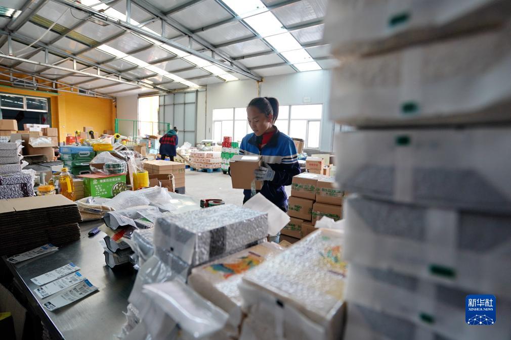 10月12日,河北省沽源縣一家藜麥加工企業的工人在將藜麥產品打包,準備發快遞。