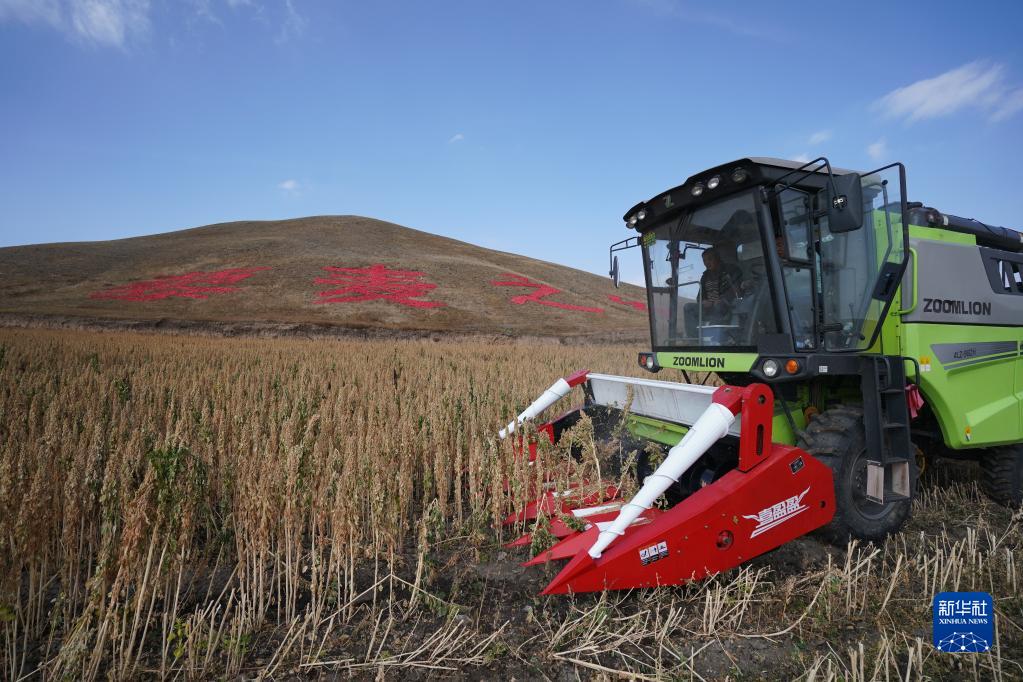 10月12日,收割機在河北省沽源縣白土窯鄉陳家營村田地里收割藜麥。