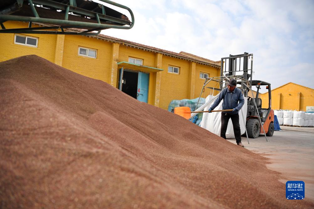 10月12日,河北省沽源縣一家藜麥加工企業(yè)的工人在整理收獲的藜麥。