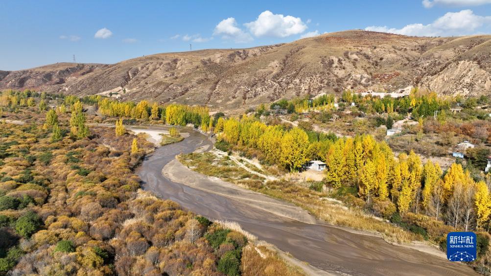內蒙古自治區赤峰市克什克騰旗多倫河秋日風光(10月12日攝,無人機照片)。