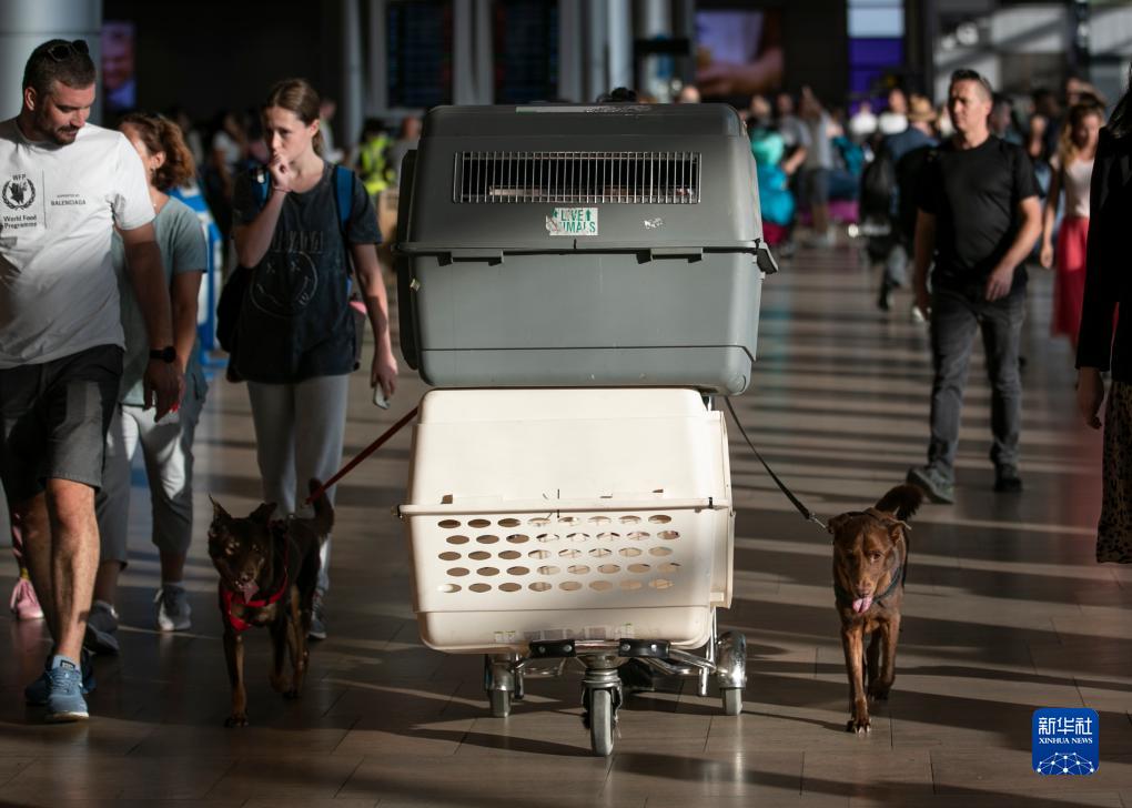 10月12日,在以色列特拉維夫附近的本-古里安國際機場,旅客攜帶寵物準備一同登機。