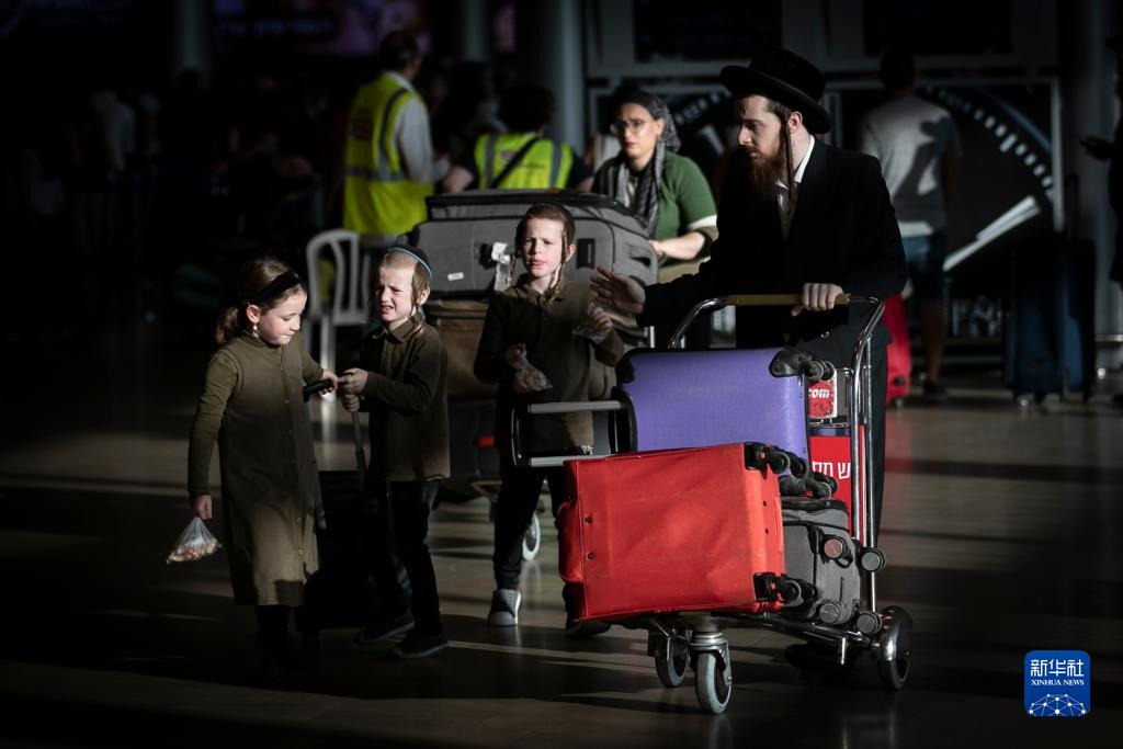 10月12日,旅客在以色列特拉維夫附近的本-古里安國(guó)際機(jī)場(chǎng)出發(fā)層等待值機(jī)。