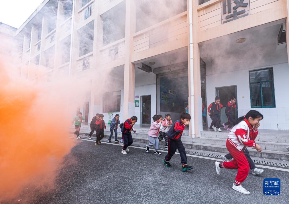 10月13日,浙江省湖州市吳興區(qū)東林鎮(zhèn)應(yīng)急管理服務(wù)中心聯(lián)合東林小學(xué)開展“國際減災(zāi)日”主題活動,學(xué)生參加逃生演練。