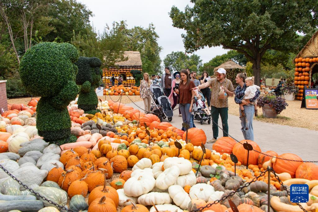 10月12日,游客參觀美國得克薩斯州達拉斯植物園的“南瓜小鎮(zhèn)”。