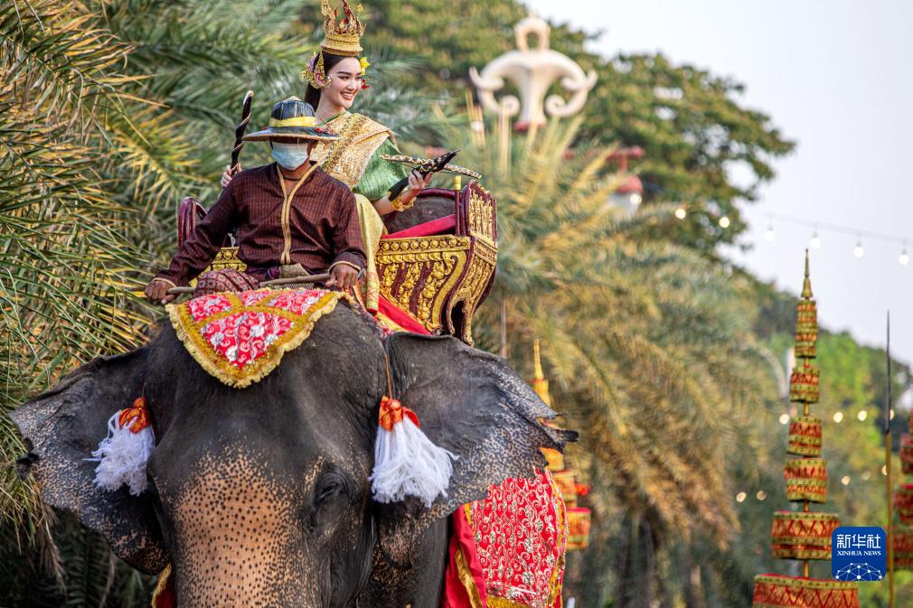 2022年4月13日,在泰國大城府,演員參加街頭巡游活動慶祝泰國傳統新年宋干節。