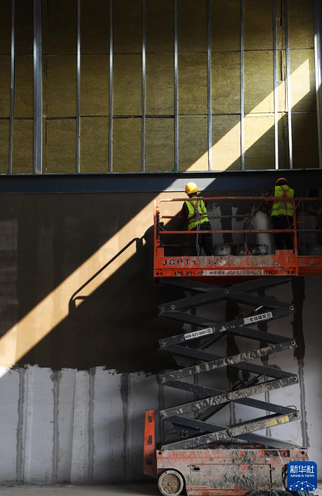 10月13日,工人在鄭州國際陸港新址項目工地作業。