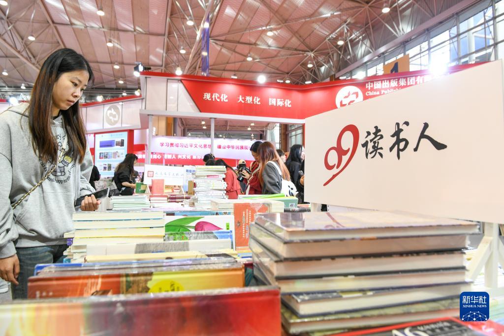 10月13日,在成都市世紀城新國際會展中心,市民在2023天府書展主展場選購圖書。