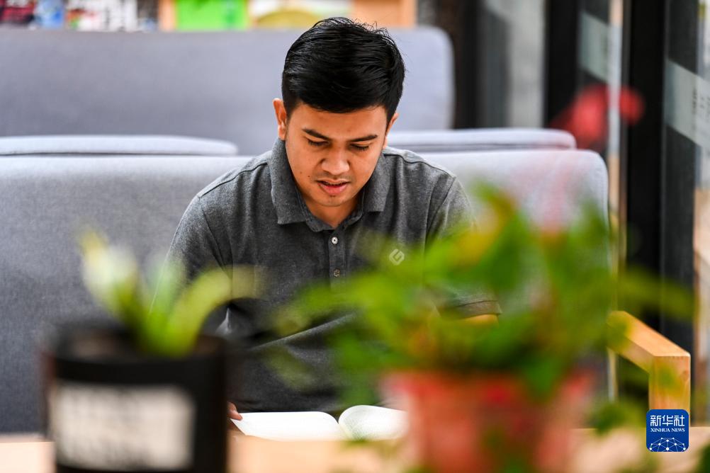 10月12日,仁迪在廣西藝術學院圖書館查閱資料。