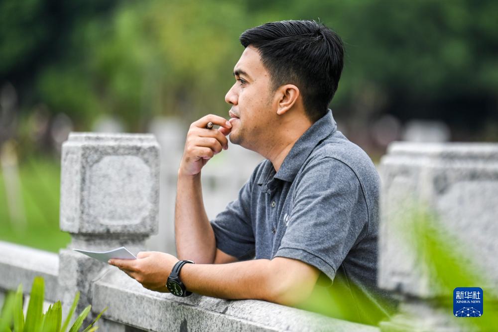 10月12日,仁迪在南寧市南湖公園尋找創作靈感。