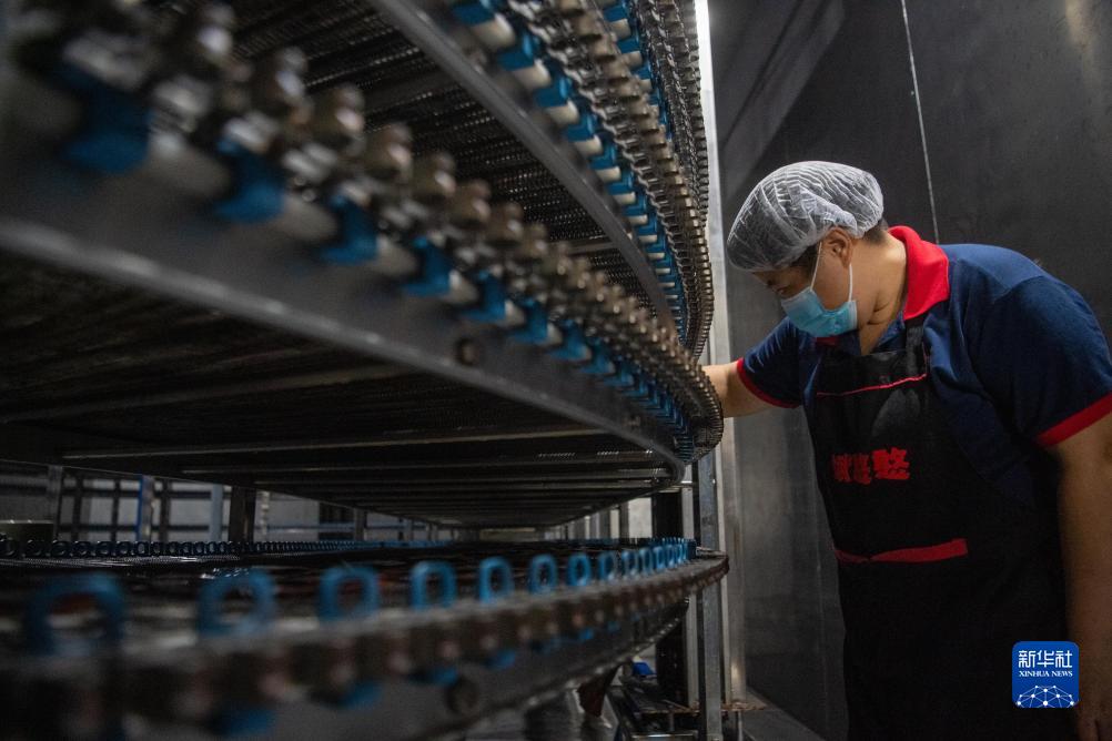 10月11日,在位于重慶市綦江區食品工業園的斌憨憨食品有限公司生產車間內,工作人員在生產線上工作。重慶綦江區在推進傳統產業數字化改造的同時,大力培育戰略性新興產業,以衛星制造和大數據應用為核心的新一代信息技術、新材料、裝備制造、節能環保、消費品工業五個新產業呈現集群化發展的良好態勢。