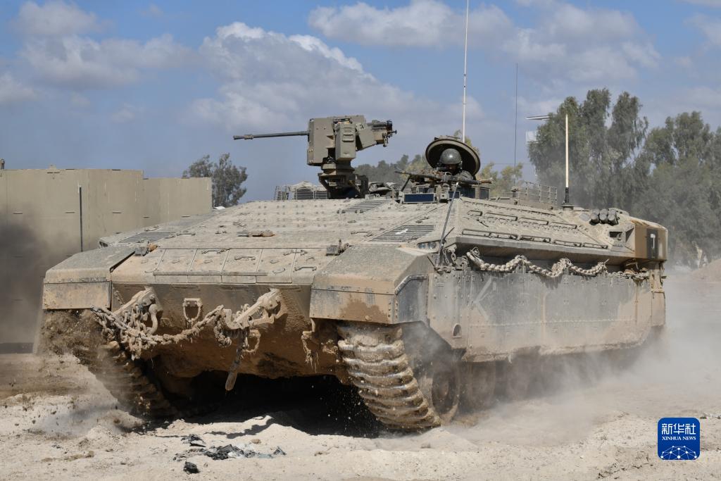 這是10月13日在加沙邊境以色列一側(cè)拍攝的集結(jié)的以軍裝甲車。
