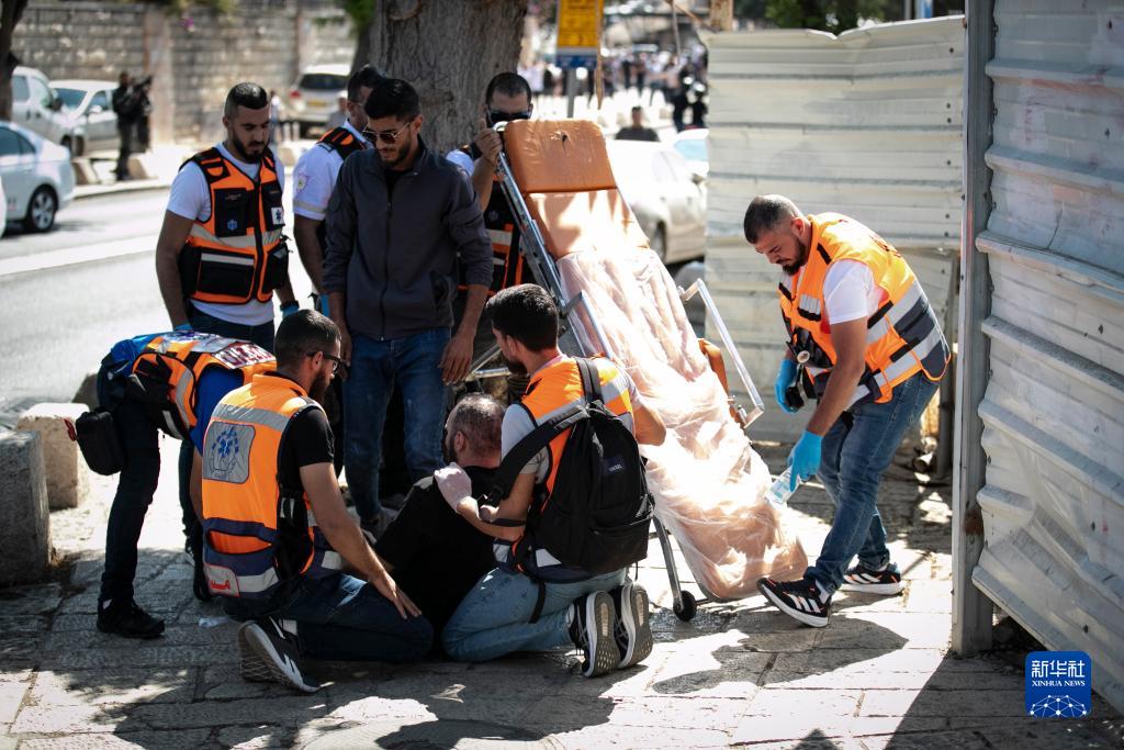 10月13日,在耶路撒冷老城,一名在沖突中受傷的男子接受醫(yī)治。