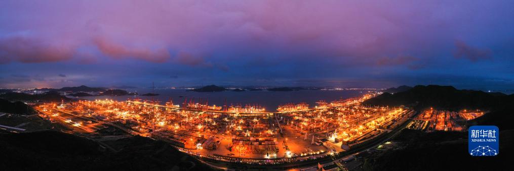 浙江省寧波舟山港穿山港區集裝箱碼頭繁忙景象(無人機全景照片,9月21日攝)。