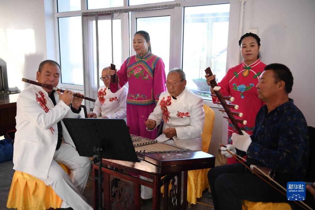 10月13日,一支康保二人臺劇團在河北省康保縣大蘿卜村內排練曲目。