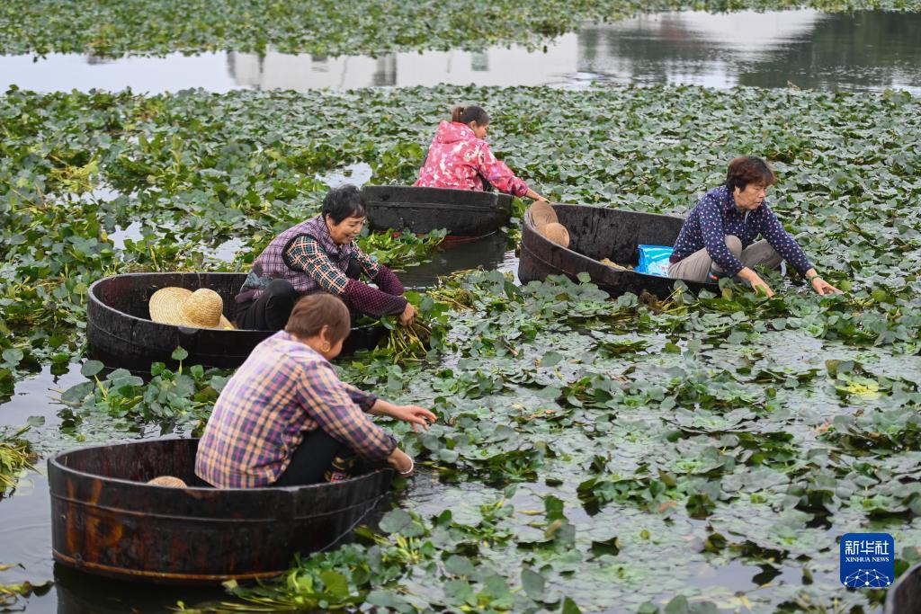 近日,浙江省湖州市南潯區和孚鎮多個鄉村種植的菱角進入收獲季。村民劃著菱桶在水面采菱,展現一幅江南水鄉獨有的豐收圖景。