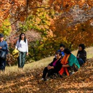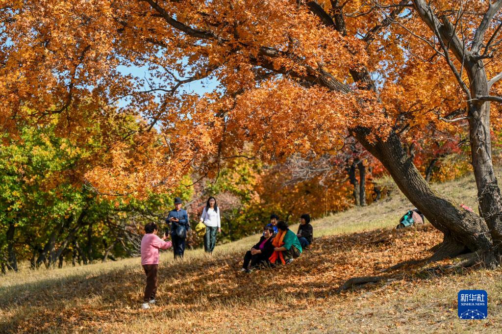 10月14日,游人在烏旦塔拉五角楓森林公園游覽。