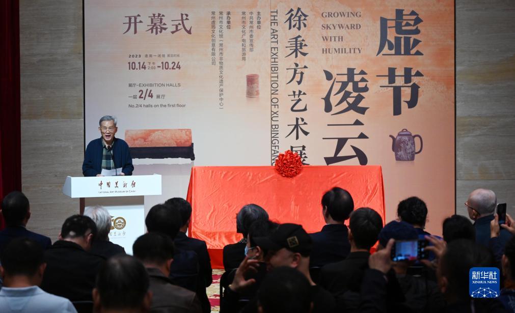 當日,“虛節凌云——徐秉方藝術展”在中國美術館開幕。徐秉方是國家級非物質文化遺產常州留青竹刻技藝代表性傳承人。本次展覽展出徐秉方先生和其父親、女兒三代人所作竹刻、書畫、壺刻精品百余件,展覽將持續至10月24日。