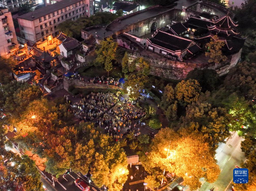 10月13日拍攝的貴陽市文昌閣路邊音樂會現(xiàn)場(無人機照片)。
