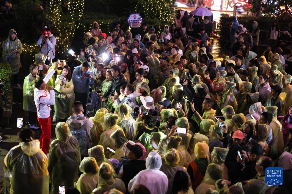 10月13日,剛剛在杭州亞運會龍舟項目上奪冠的王亮在貴陽市文昌閣路邊音樂會現場演唱。