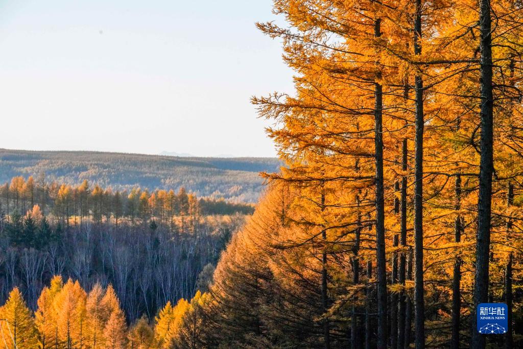 10月14日在河北承德拍攝的塞罕壩國家森林公園秋景。