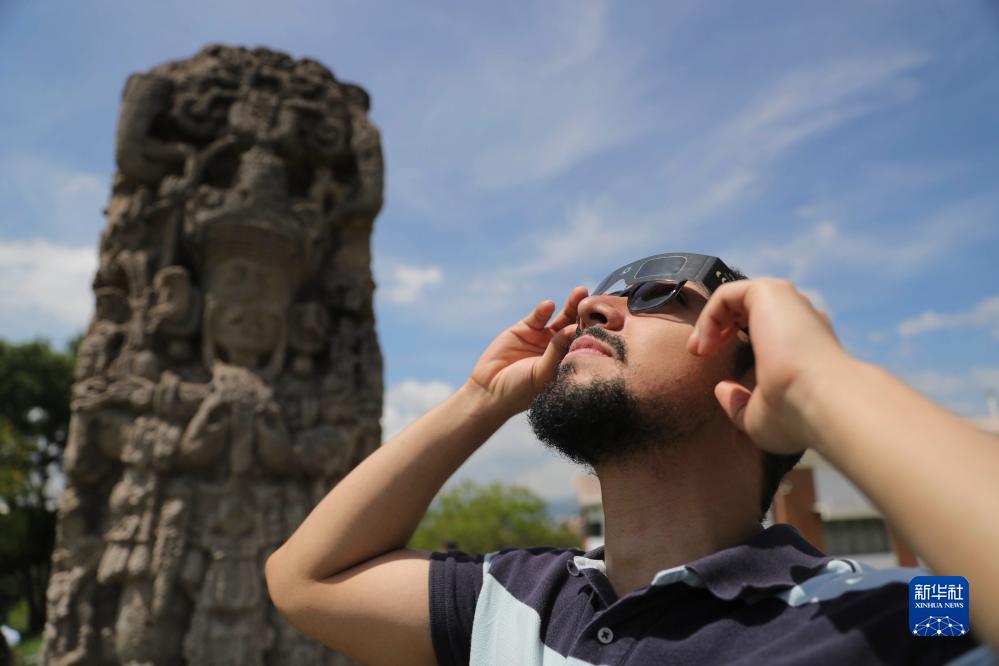 10月14日,一名男子在洪都拉斯首都特古西加爾巴觀看日食。