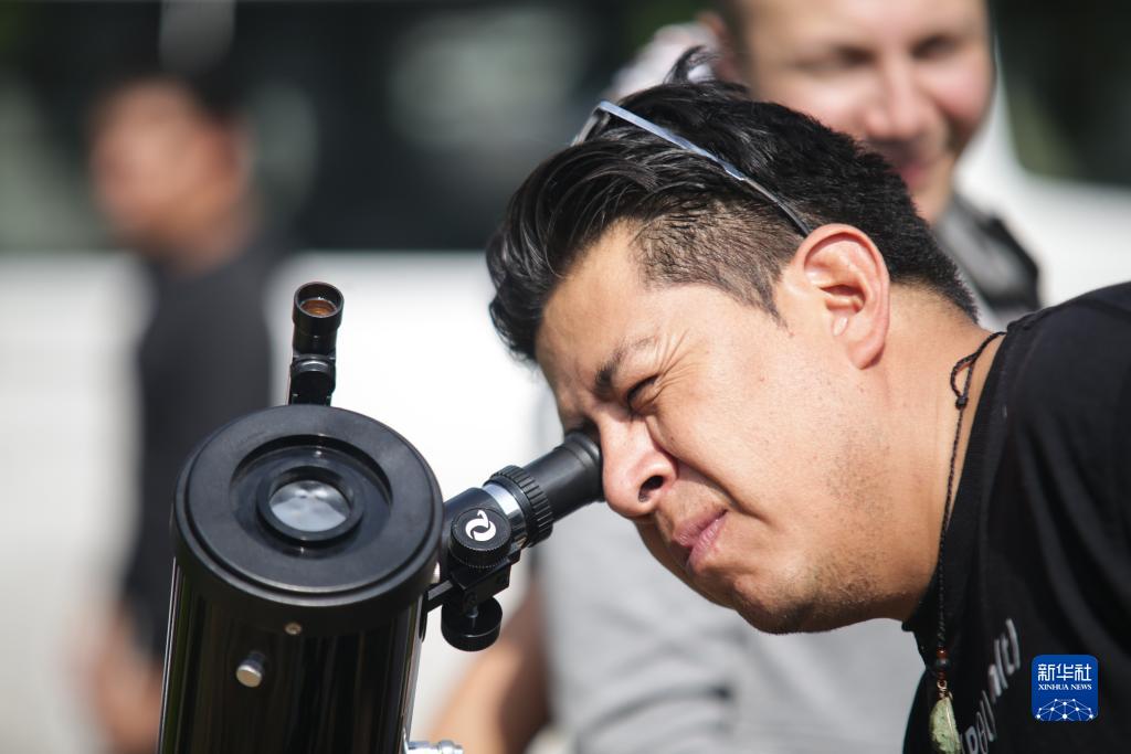 10月14日,一名男子在墨西哥首都墨西哥城觀看日食。