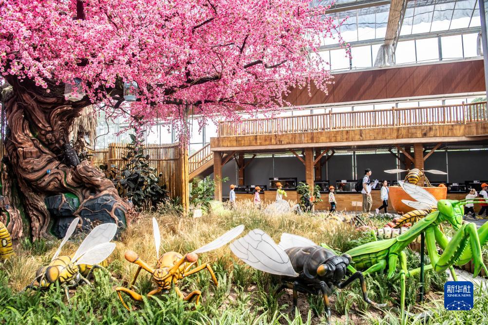 10月14日,小朋友在重慶市將軍村的“昆蟲王國”里游玩參觀。
