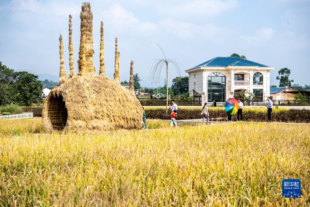 10月14日,游客在將軍村重慶市一處田間藝術(shù)景觀游玩參觀。