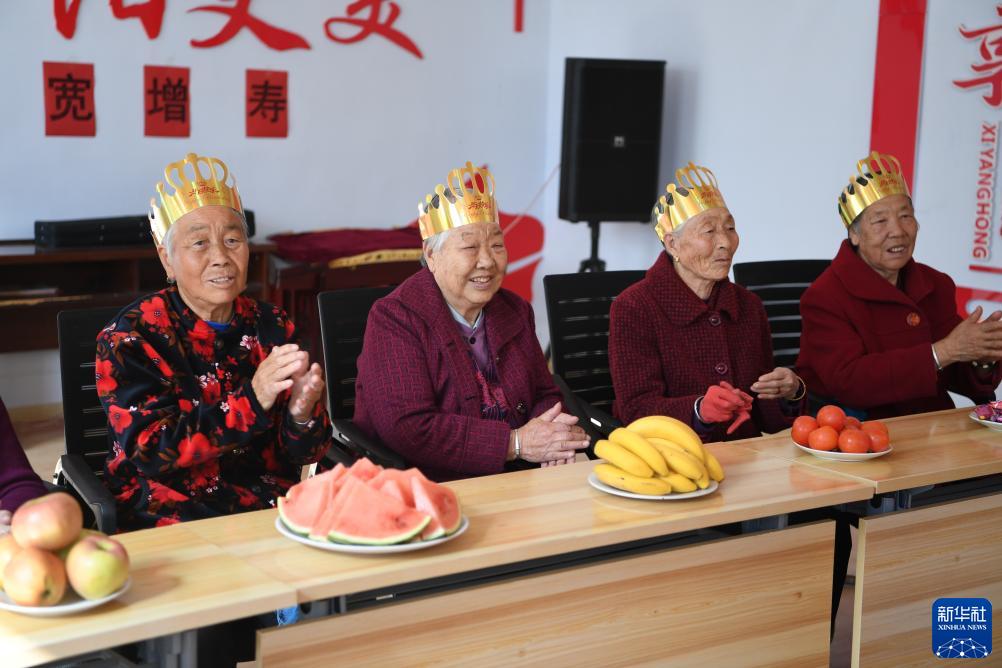 10月14日,居住在河北省康保縣土城子鎮(zhèn)互助幸福院的老人們在過集體生日。