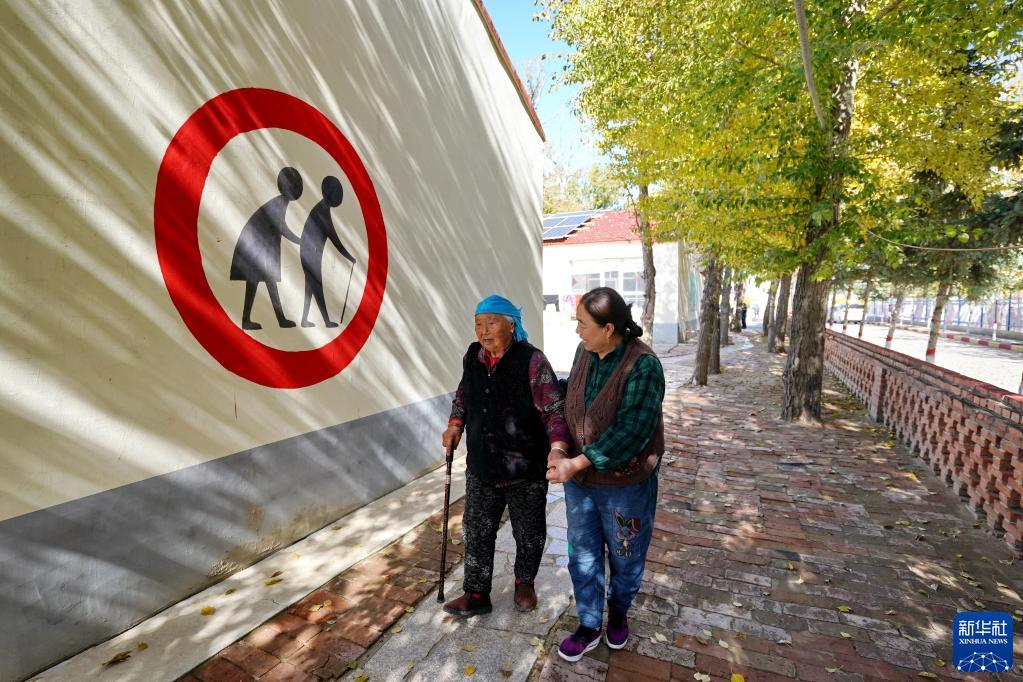 10月14日,居住在河北省康保縣土城子鎮(zhèn)互助幸福院的老人在院子里行走。