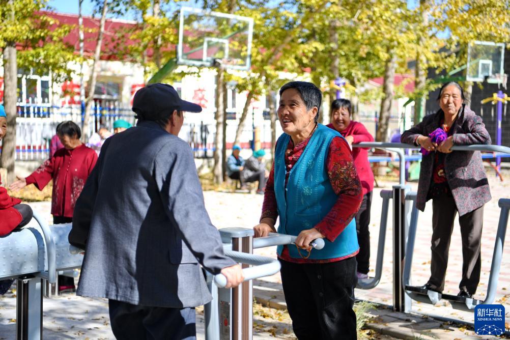 10月14日,居住在河北省康保縣土城子鎮(zhèn)互助幸福院的老人們在院子里休閑。