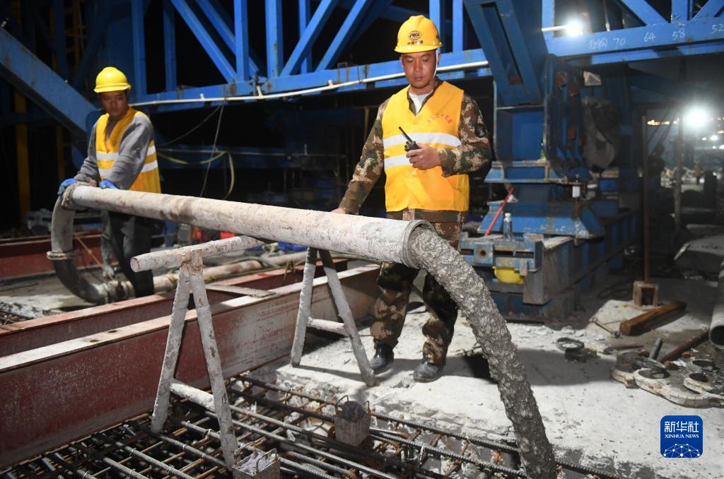 10月15日,中鐵二十五局工人在湘桂鐵路柳江雙線特大橋合龍建設(shè)施工現(xiàn)場工作。